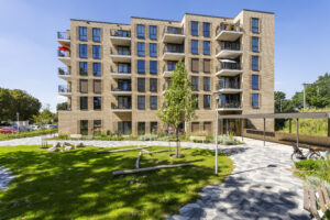 Een goed voorbeeld van hoe die samenwerking er in de praktijk uitziet, is De Jonkvrouw in Geldrop in de wijk Zesgehuchten. Deze ontwikkeling, gerealiseerd in 2024, ligt direct naast station Geldrop aan de rand van park De Beekweide. Hier ontwikkelden Wooninc. en Vitalis een plan waarin meerdere zorgdoelgroepen samenkomen. Mensen met een verstandelijke beperking, ouderen met een intensieve zorgvraag, zelfstandig wonende 55-plussers en bewoners in de vrije sector wonen hier naast elkaar. Vanuit het Wooninc.Plus-concept zijn verschillende woon- en zorgvormen geïntegreerd, met zelfstandigheid als uitgangspunt en zorg van Vitalis en Lunet in de directe nabijheid. Door intensieve afstemming tussen Wooninc., Vitalis, gemeente Geldrop en omwonenden is een breed gedragen plan gerealiseerd dat laat zien hoe een inclusieve woon- en zorgomgeving tot stand kan komen.