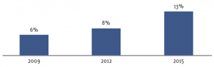 | Figuur 3: Ontwikkeling consumentenvoorkeur vrijesectorhuur (WoON, 2009-2015) |